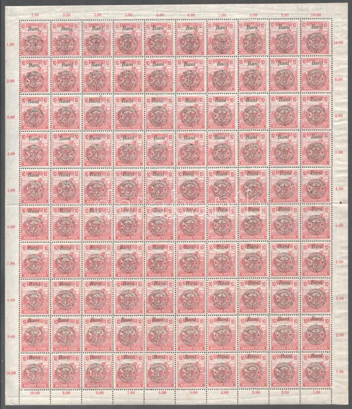 Nagyvárad 1919 Magyar Posta 10f hajtott teljes ív, benne felülnyomat e...