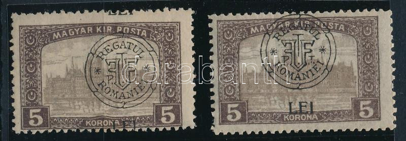 Nagyvárad 1919 Parlament 2 db 5K eltolódott felülnyomással, Bodor vizs...