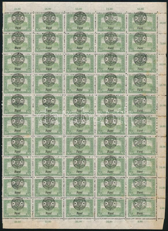 Nagyvárad 1919 Parlament 80f fél ív Bodor vizsgálójellel, különféle lemezhibákkal, elcsúszásokkal (rozsda / stain)
