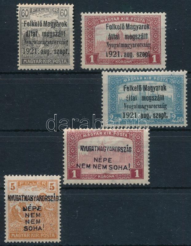 Nyugat-Magyarország 1921 5 klf bélyeg, az egyik hármaslyukasztással, B...