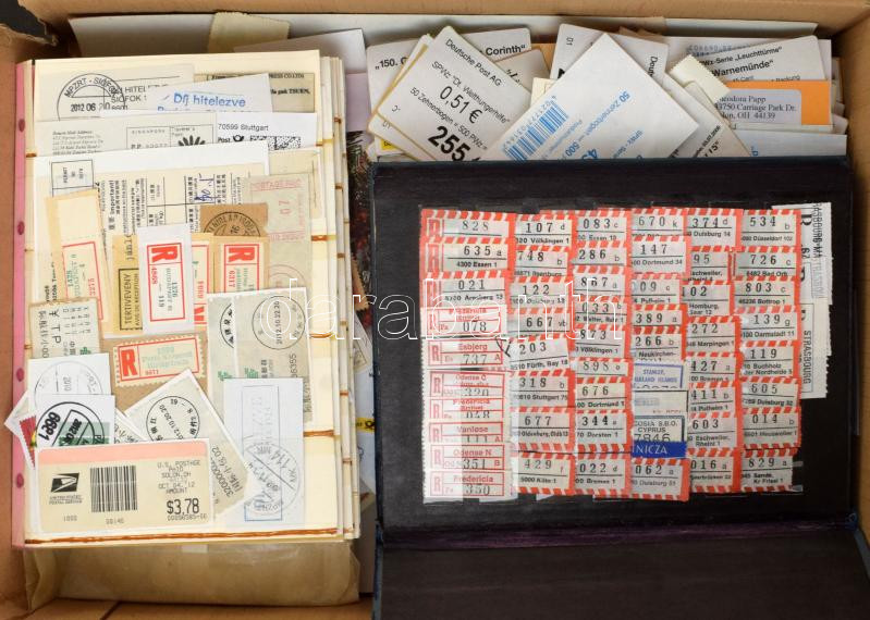 Ragjegyek és egyéb parafilatélia tétel dobozban