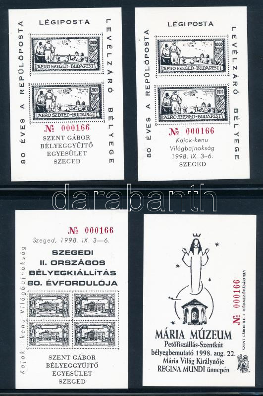 1998 Kajak-kenu, Repülőposta, Bélyegkiállítás, Mária-múzeum 4 db-os emlékív garnitúra azonos sorszámmal