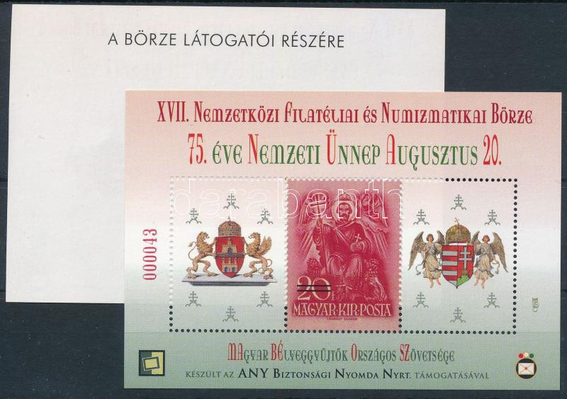 2013 XVII. Nemzetközi filatéliai és numizmatikai börze emlékív pár azonos sorszámmal, alap + ajándék