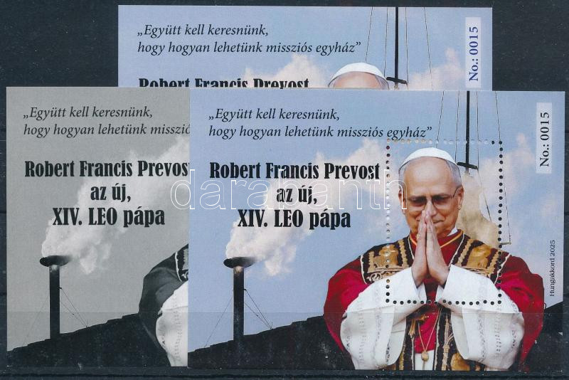 2025 XIV. Leo pápa 3 db-os emlékív garnitúra azonos No. 0015 sorszámmal