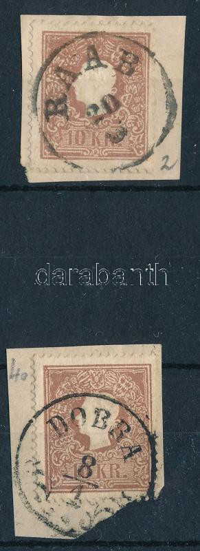 1858 2 db 10kr 1-1 kivágáson "RAAB" és "DOBRA" bél...