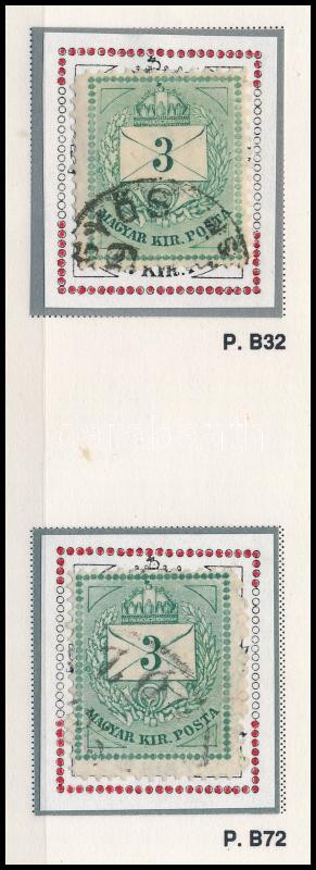 1874 2 db 3kr durva gyöngyjavítással, ritka (ex Orbán, Sebestyén aranyérmes kiállítási anyagból)