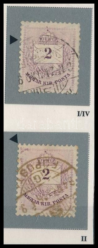 1881 2 db 2kr ritka vésésjavításokkal, jelölve, ívhellyel (ex Orbán, Sebestyén aranyérmes kiállítási anyagból)