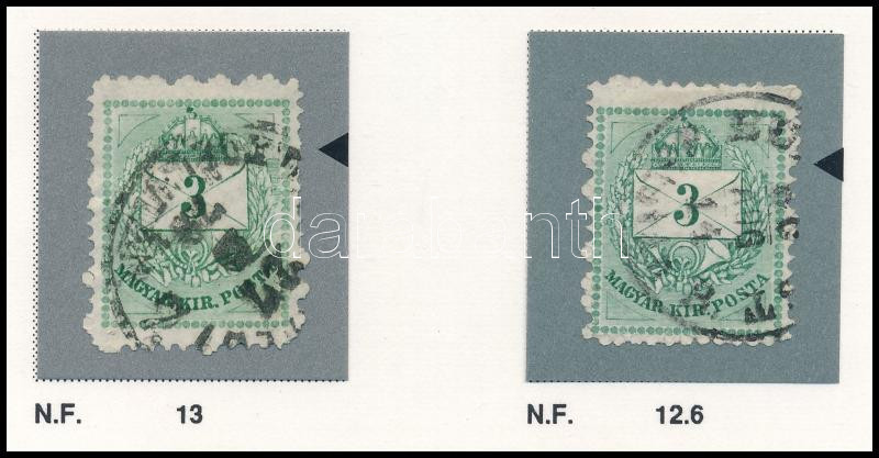 1881 2 db 3kr klf vésésjavítással, ritka (ex Orbán, Sebestyén aranyérm...