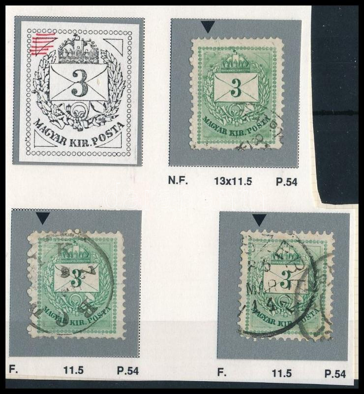 1881 3 db 3kr klf vésésjavítással, ritka (ex Orbán, Sebestyén aranyérm...
