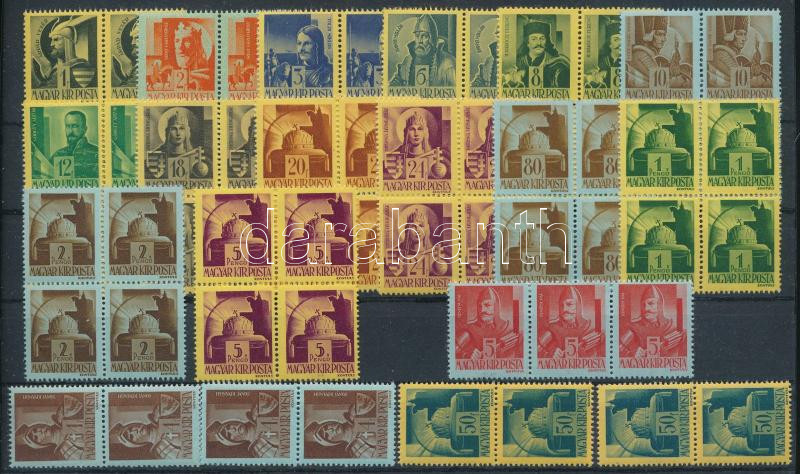 1945 Kisegítő bélyegek fázisnyomatok felülnyomat nélkül: 14 db négyestömb, 2 db pár és 1 hármascsík