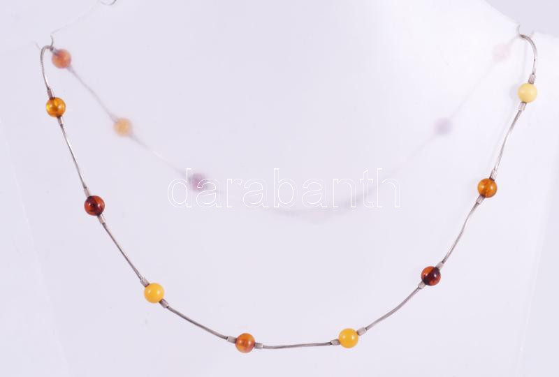 Ezüst (Ag) nyaklánc, borostyánokkal, jelzett, bruttó 5g