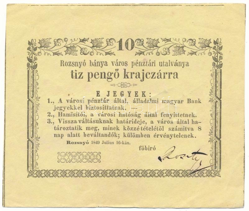 https://www.darabanth.com/en/512-Online-auction/512.0/Numismatics/Emergency-Coins-and-Notes~234/1849-Rozsnyo-1849-julius-16-10kr-3Cem3ERozsnyo-banya-varos-penztari-utalvanya3Cem3E-TF-h~II3455885