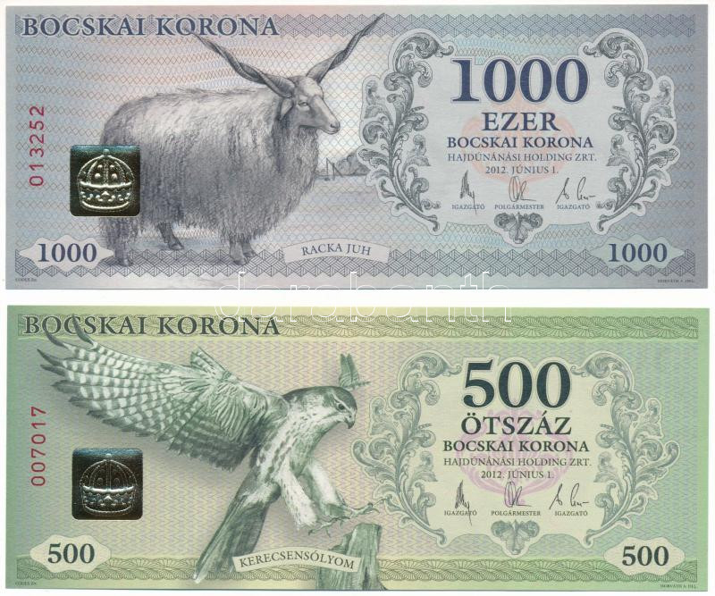2012. Hajdúnánás 500K "Bocskai Korona - Kerecsensólyom" "007017" sorszámmal + 1000K "Bocskai Korona - Kerecsensólyom" "013252" sorszámmal T:UNC