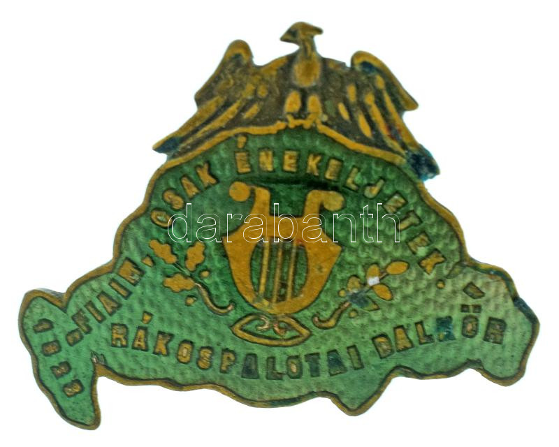 https://www.darabanth.com/en/512-Online-auction/512.0/Numismatics/Faleristics-medals-orders-badges~248/1923-Rakospalotai-Dalkor-Fiaim-csak-enekeljetek-zomancozott-bronz-dalos-gomblyukjelveny-~II3462362