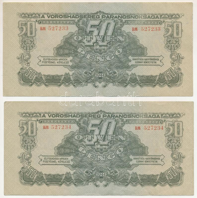 1944. 50P "A Vöröshadsereg Parancsnoksága" (2x) sorszámkövetők "BM 527233 - BM 527234" T:F szép papír