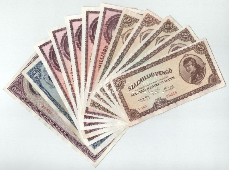 1945-1946. 100P - 1.000.000.000P (12db, 4xklf) T:F, néhány foltos