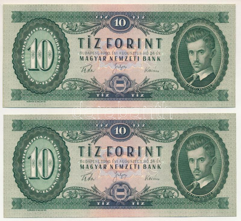 1960. 10Ft (2x) sorszámkövetők "A 539 067075 - 539 067076" T...