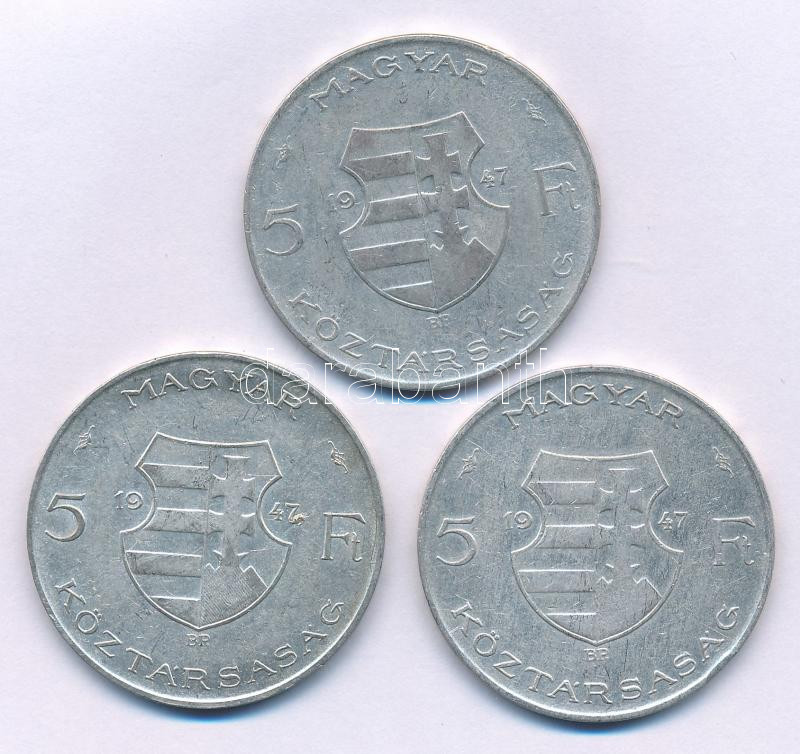 https://www.darabanth.com/en/512-Online-auction/512.0/Numismatics/Hungarian-coins-and-coins-with-Hungarian-mint-marks~236/1947-5Ft-Ag-Kossuth-3x-TF-patina3Cbr-3E-Adamo-F81~II3460752