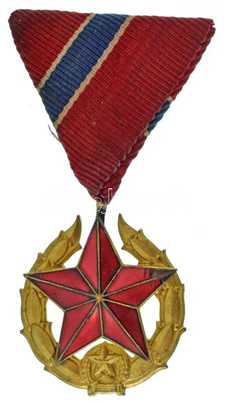 Hungary 1951. "Public Security Medal" for the members of the Armed Forces, golden grade, gilt, enamelled bronze decoration with ribbon C:XF,VF enamel error