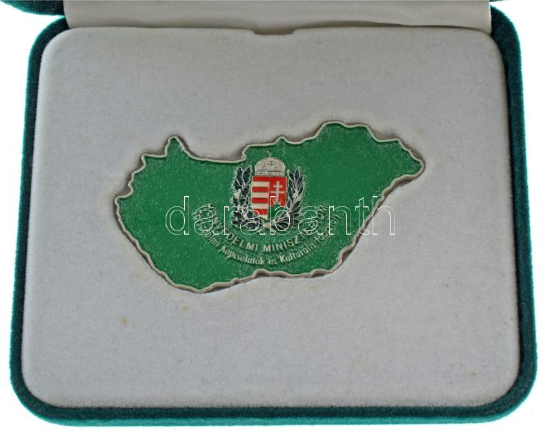 Description: DN "Honvédelmi Minisztérium - Társadalmi Kapcsolatok és Kulturális főosztály" Magyarország alakú fém emlékplakett dísztokban(~60x35mm) T:UNC