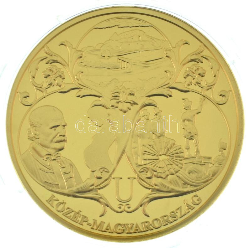 Csontos Attila DN "Hazánk kincsei - U - Közép-Magyarország" aranyozott Cu-Ni emlékérem kapszulában, tanúsítvánnyal (38,61mm) T:PP