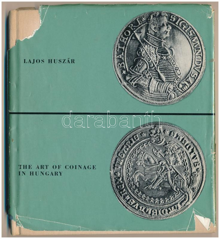 Huszár Lajos, Dr.: The Art of Coinage in Hungary. Budapest, Corvina Press, 1963. Külső védőborító nagyobb anyaghiányokkal, ázásnyommal