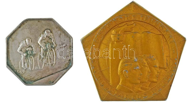 1949. "VIT Diákolimpia 1949 / Egységbe Ifjúság! Előre a tartós békéért!" kétoldalas, aranyozott Al emlékplakett (54x57mm) + DN "MAK 930" kétoldalas, ezüstözött bronz kerékpározó díjérem (37x37mm) T:XF, aranyozás kopás