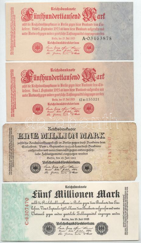 Német Birodalom 1923. 500.000M - 5.000.000M (4xklf) T:AU-F egyiken kéz... https://www.darabanth.com/en/512-Online-auction/512.0/Numismatics/Worldwide-banknotes~242/Nemet-Birodalom-1923-500000M-5000000M-4xklf-TAU-F-egyiken-keziras3Cbr-3E-German-Empire-~II3456468