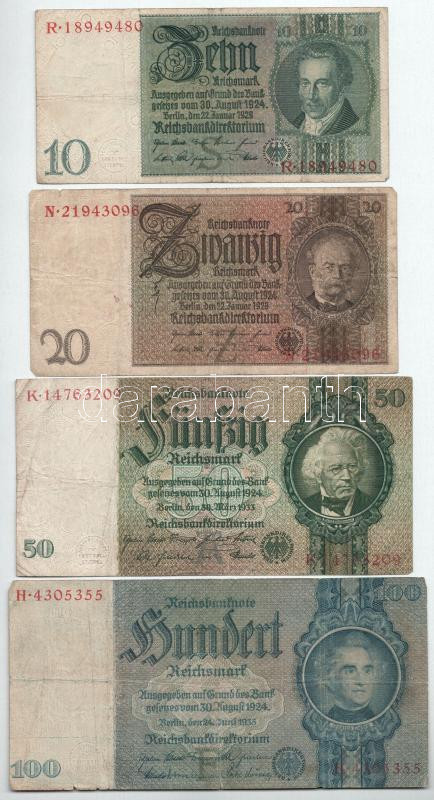 Német Birodalom 1929-1935. 10M - 100M (4xklf) T:F-VG