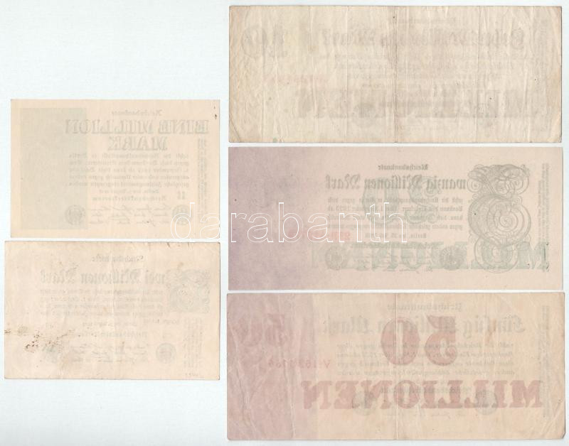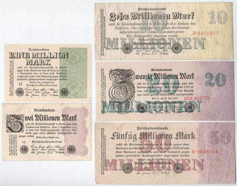 Németország / Weimari Köztársaság 1923. 1.000.000M + 3.000.000M + 10.000.000M + 20.000.000M + 50.000.000M T:AU-F