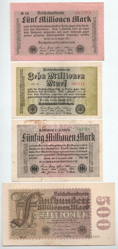 Németország / Weimari Köztársaság 1923. 5.000.000M + 10.000.000M + 50.000.000M + 500.000.000M T:AU-F