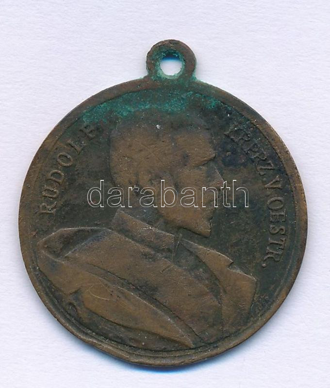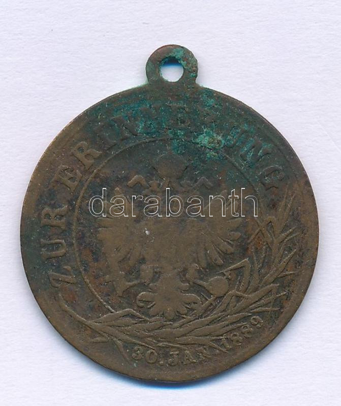 Description: Ausztria 1889. "Rudolf főherceg / Emlékére 1889. január 30. " bronz emlékérem füllel (27mm) T:VF patina