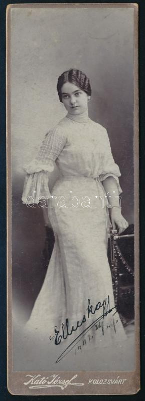1904 Elegáns hölgy portréja. Keményhátú fotó Kató József kolozsvári mű...
