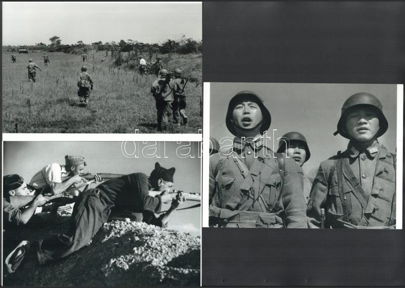 Description: Robert Capa (1913-1954) (eredeti neve Friedmann Endre) magyar - francia fotóriporter felvételei különféle helyszíneken, 3 db modern nagyítás, jelzés nélkül, 15x21 cm