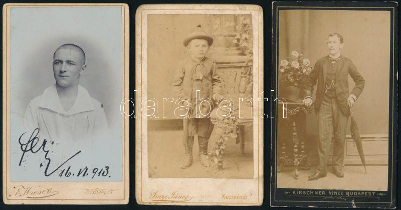 cca 1880-1913 3 db keményhátú fotó (matróz, kisgyerek, férfiportré) ve...