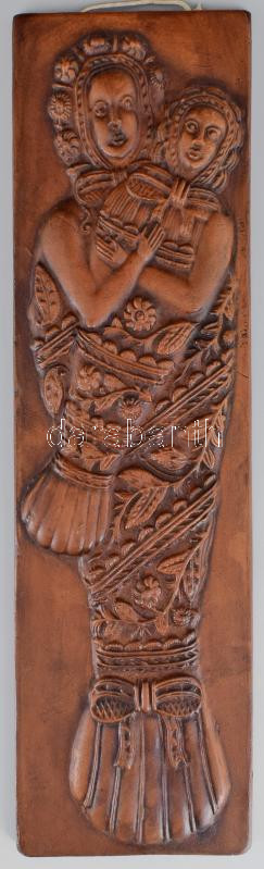 Domború engóbozott kerámia falidísz, 40x12 cm