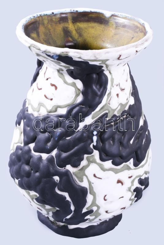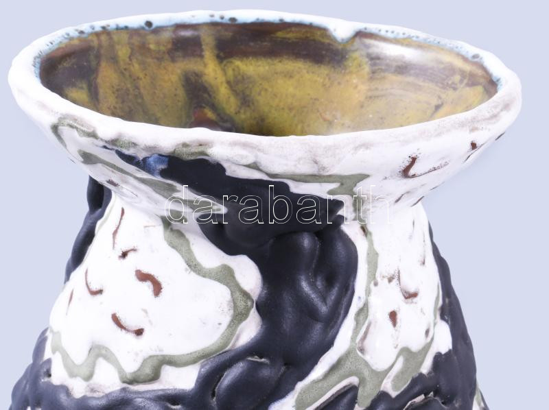 Király Károly hólyagos váza. Jelzett, mázrepedéssel, m: 19,5 cm