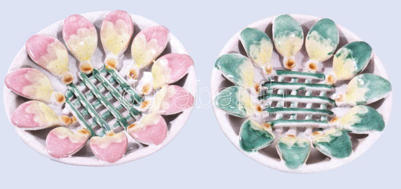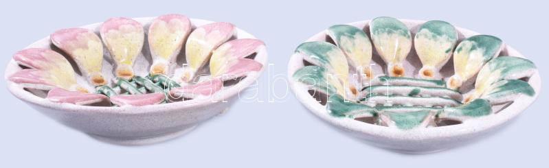 2 db kerámia fali dísztál, kárpátaljai. Kézzel festett, jelzett, hibát...