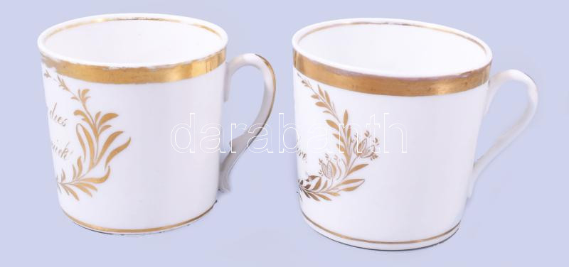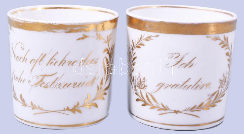 2 db régi német gratuláló emlékpohár. Kézzel festett, jelzés nélkül, hibátlan XIX. sz. 6 cm