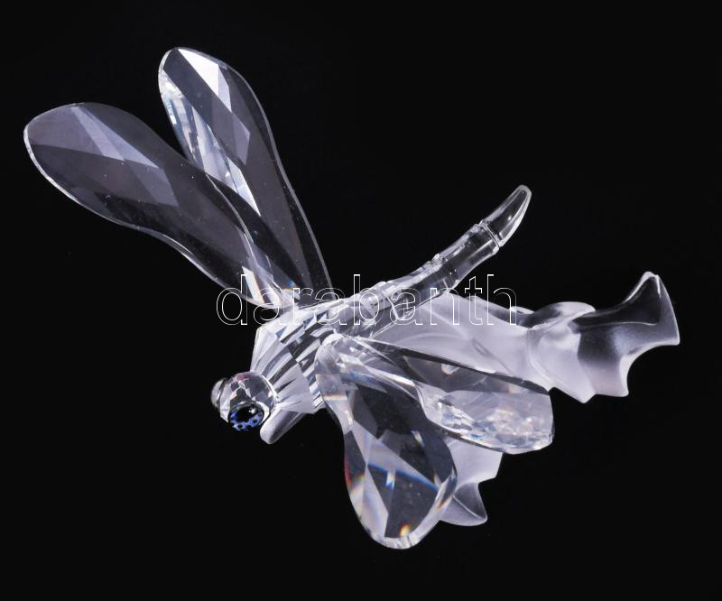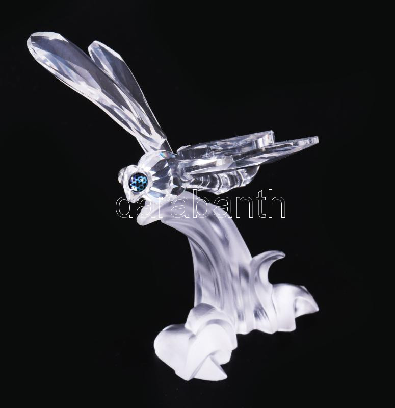 Üveg szitakötő szobor, hibátlan, tartójában, m:7,5 cm
