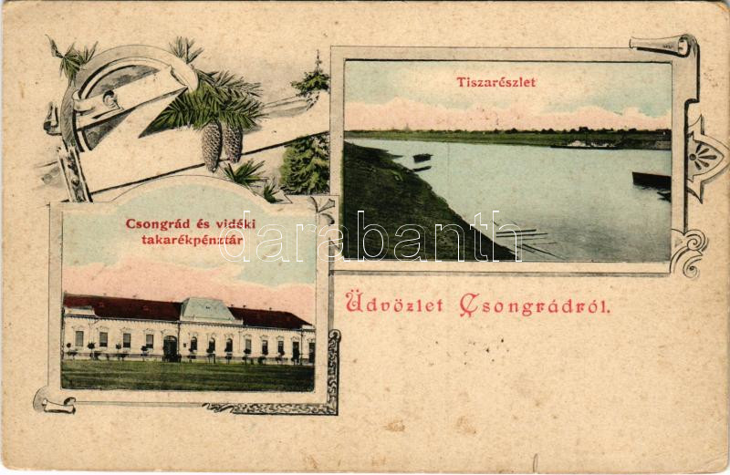 1917 Csongrád, Tisza részlet, Csongrád és Vidéki Takarékpénztár. Bozó ...