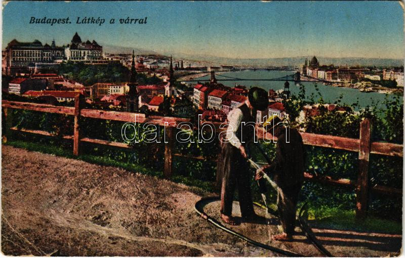 1918 Budapest I. Tabán és királyi vár, Citadellla sétány, ivó flaska vízzel megtöltése. Vasúti levelezőlapárusítás 1916. (EK)