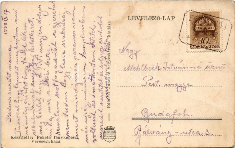 1939 Erdőkertes (Erdőkertes), Vasútállomás, vonat, mozdony. Készítette Fekete fényképész. Kiadja Rákóczi Jánosné (EK)