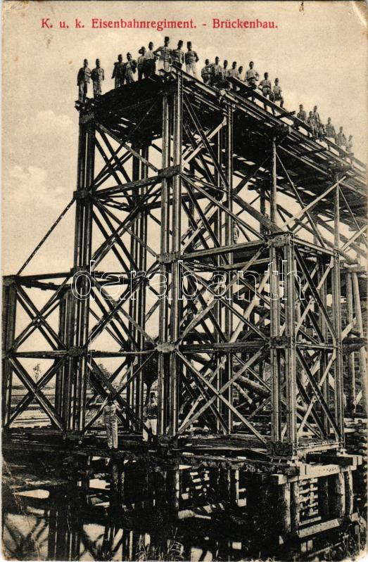 1914 K.u.k. Eisenbahnregiment, Brückenbau. J.L.K. 1914. / Cs. és kir. ... https://www.darabanth.com/en/512-Online-auction/512.0/Postcards/Militaria~172/1914-Kuk-Eisenbahnregiment-Bruckenbau-JLK-1914-Cs-es-kir-vasuti-ezred-hidepites-~II3462676