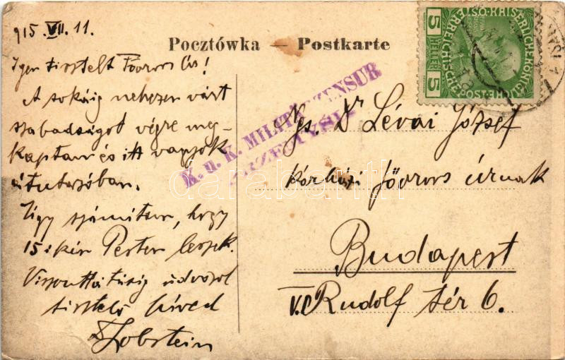 1915 Przemysl, Ul. Mickiewicza / Mickiewiczstrasse / street view + "K.u.k. Militärzensur Przemysl" (EB)
