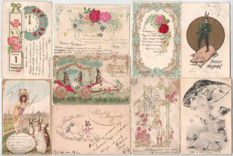 Description: 30 db RÉGI (1905 előtti) üdvözlőlap, sok litho és dombornyomott; vegyes minőség / 30 pre-1905 greeting cards, many lithos and embossed (Emb.); mixed quality