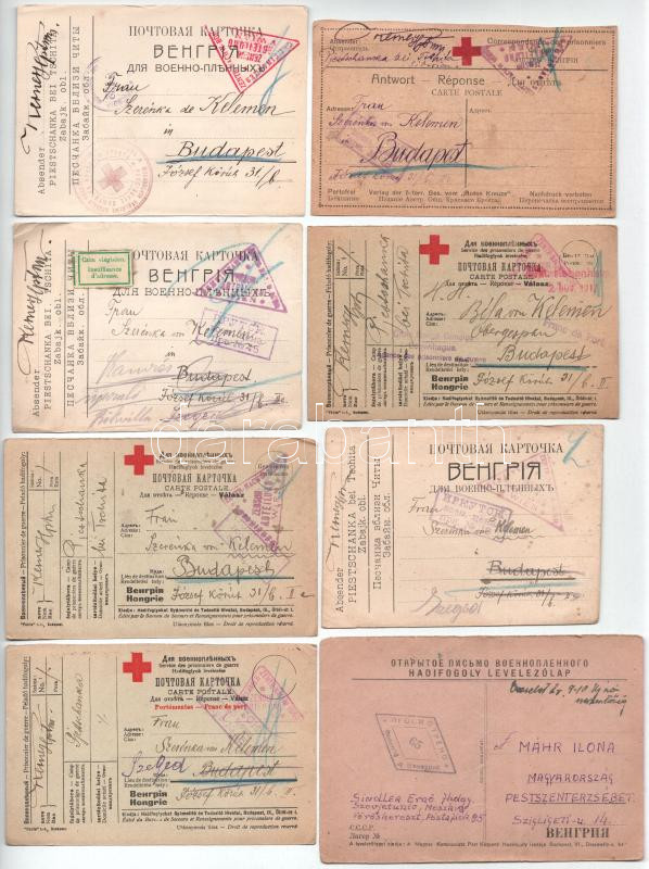 Description: 8 db RÉGI első és második világháborús orosz-magyar hadifogoly levelezőlap, vegyes minőségben / 8 pre-1945 WWI and WWII Russian-Hungarian POW (prisoner of war) postcards, in mixed quality