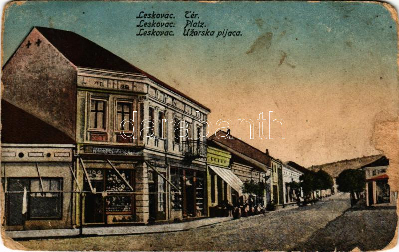 1917 Leskovac, Leskovatz; Tér, üzletek. K.J. Bp. 1916/20. / Platz / Uz...