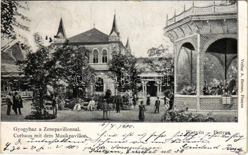 1900 Pöstyén, Pistyan, Piestany; Gyógyház és zene pavilon. A. Bernas kiadása / spa and music pavilion (EB)