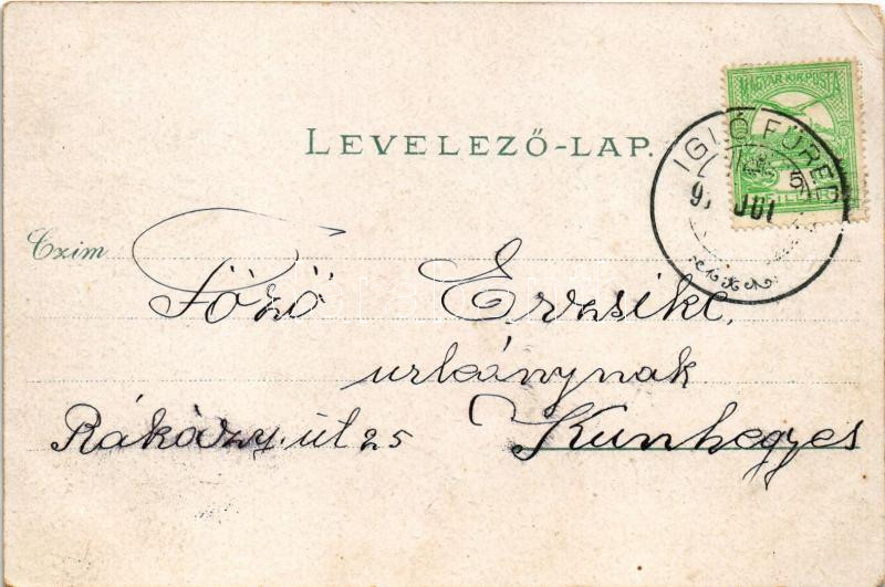 Description: Iglófüred, Bad Zipser Neudorf, Spisská Nová Ves Kupele, Novovesské Kúpele; fürdő látképe. Wlaszlovits G. kiadása. Szecessziós erdős keret / spa. Art Nouveau forest frame (EK)
